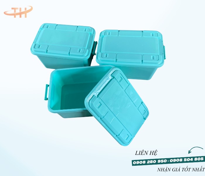 - Thiết kế tiện lợi: Có nắp đậy chắc chắn, tay cầm hoặc quai xách dễ di chuyển, an toàn khi chứa đựng hàng hóa.